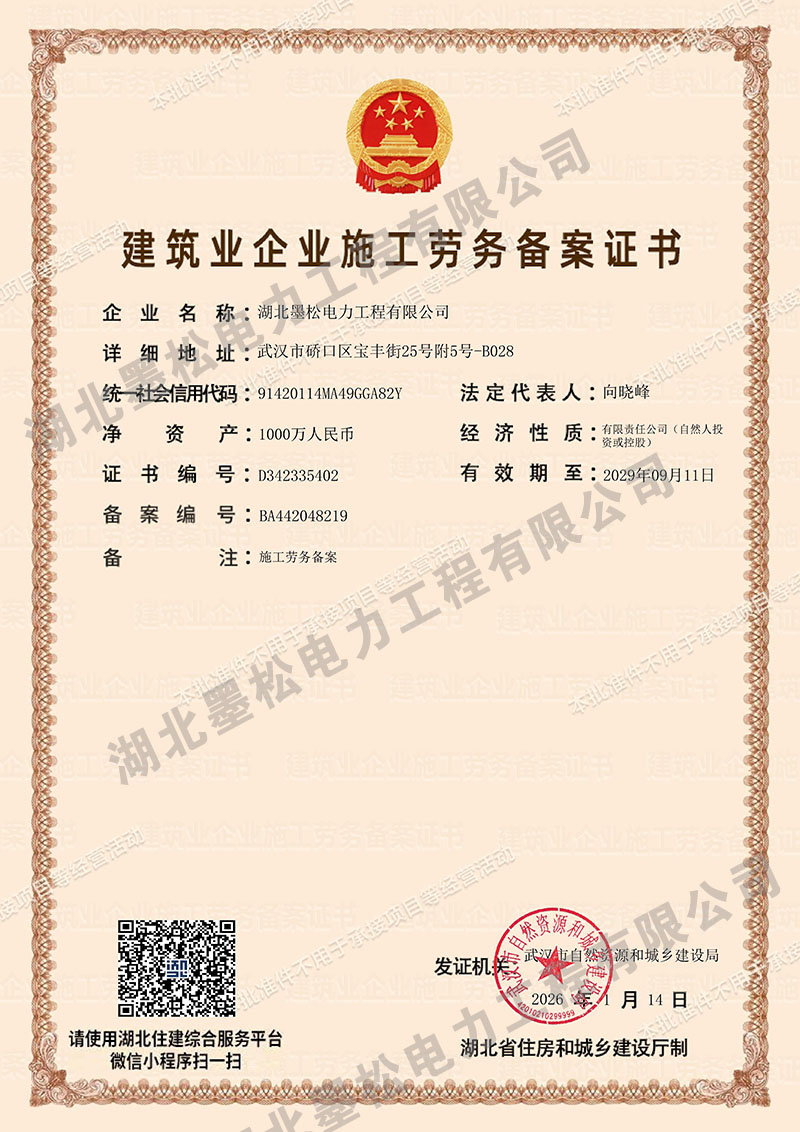 建筑业企业施工劳务备案证书